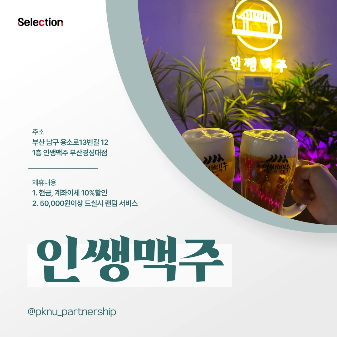 부산 남구 용소로13번길 12 1층 인쌩맥주 부산경성대점